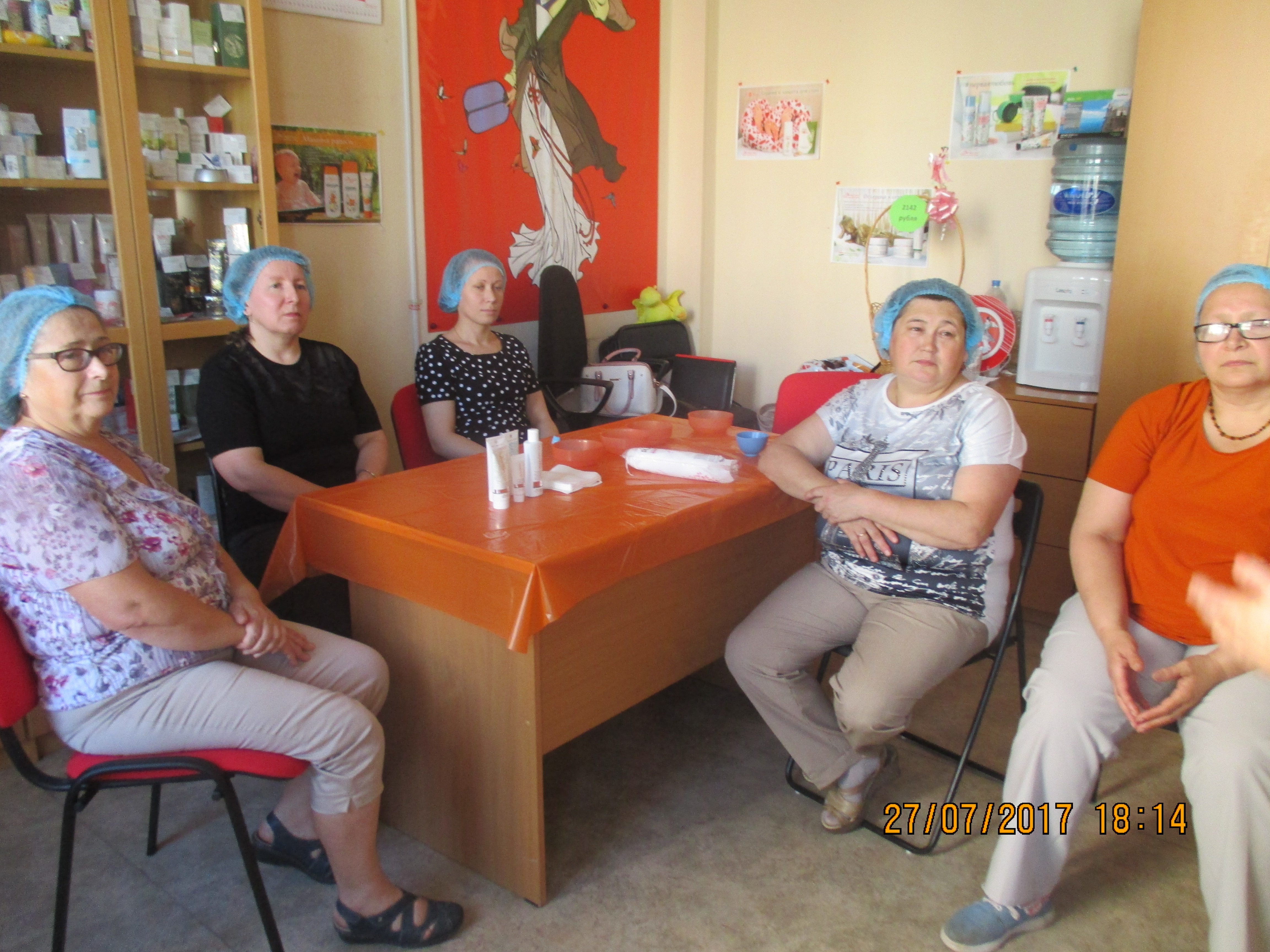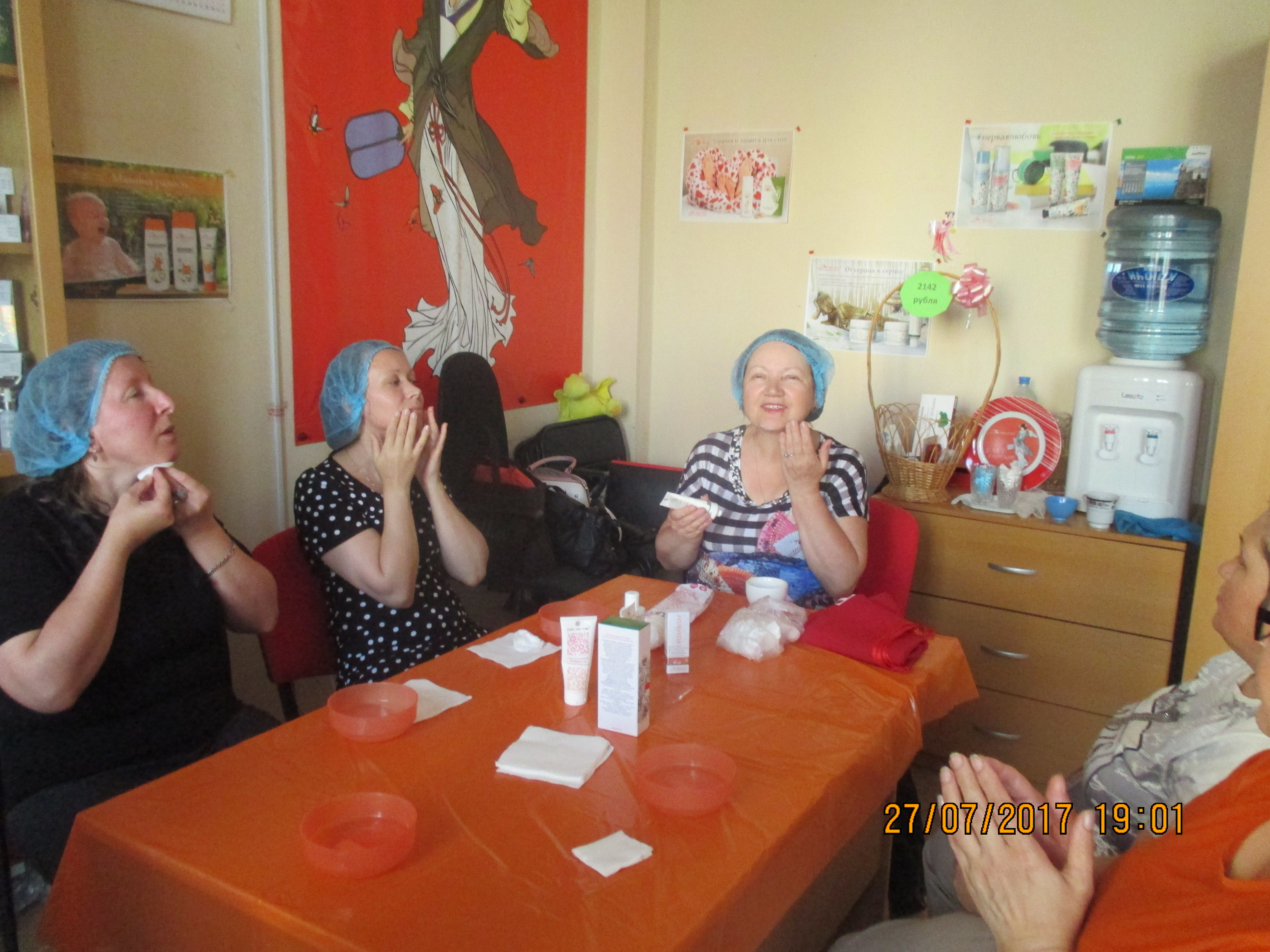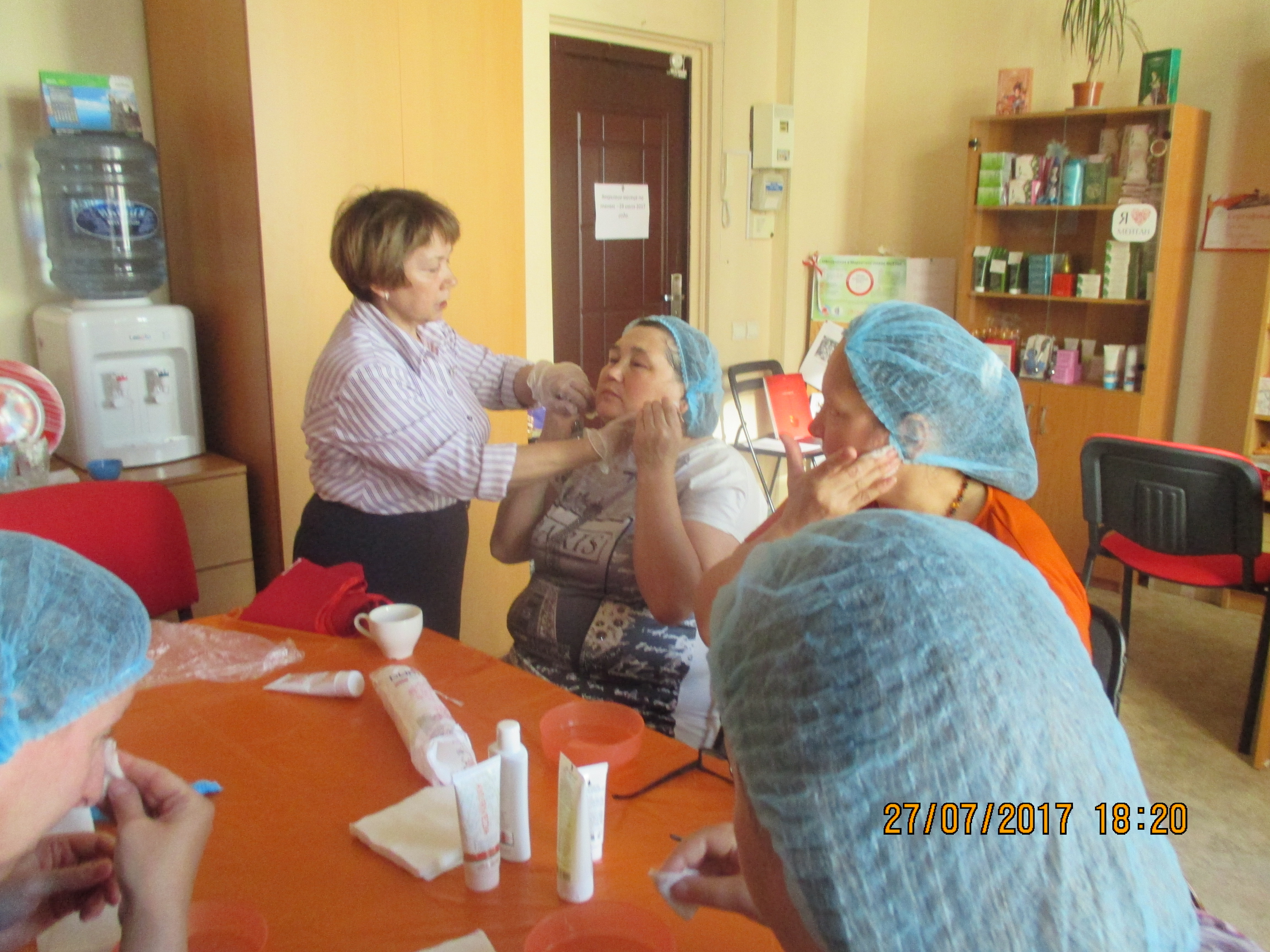 На этом мероприятии участницы не только познакомились с новыми направлениями в области косметологии, узнали об особенностях ухода в летний период времени, научились правильно пользоваться продуктом, но и смогли на практике применить свои знания и умение на вновь прибывшей участнице. Как всегда сессия прошла позитивно и с большой пользой для всех участниц. В течение этой недели, Рахматуллина Асия будет вести каждую участницу и помогать правильно использовать подаренный продукт.
