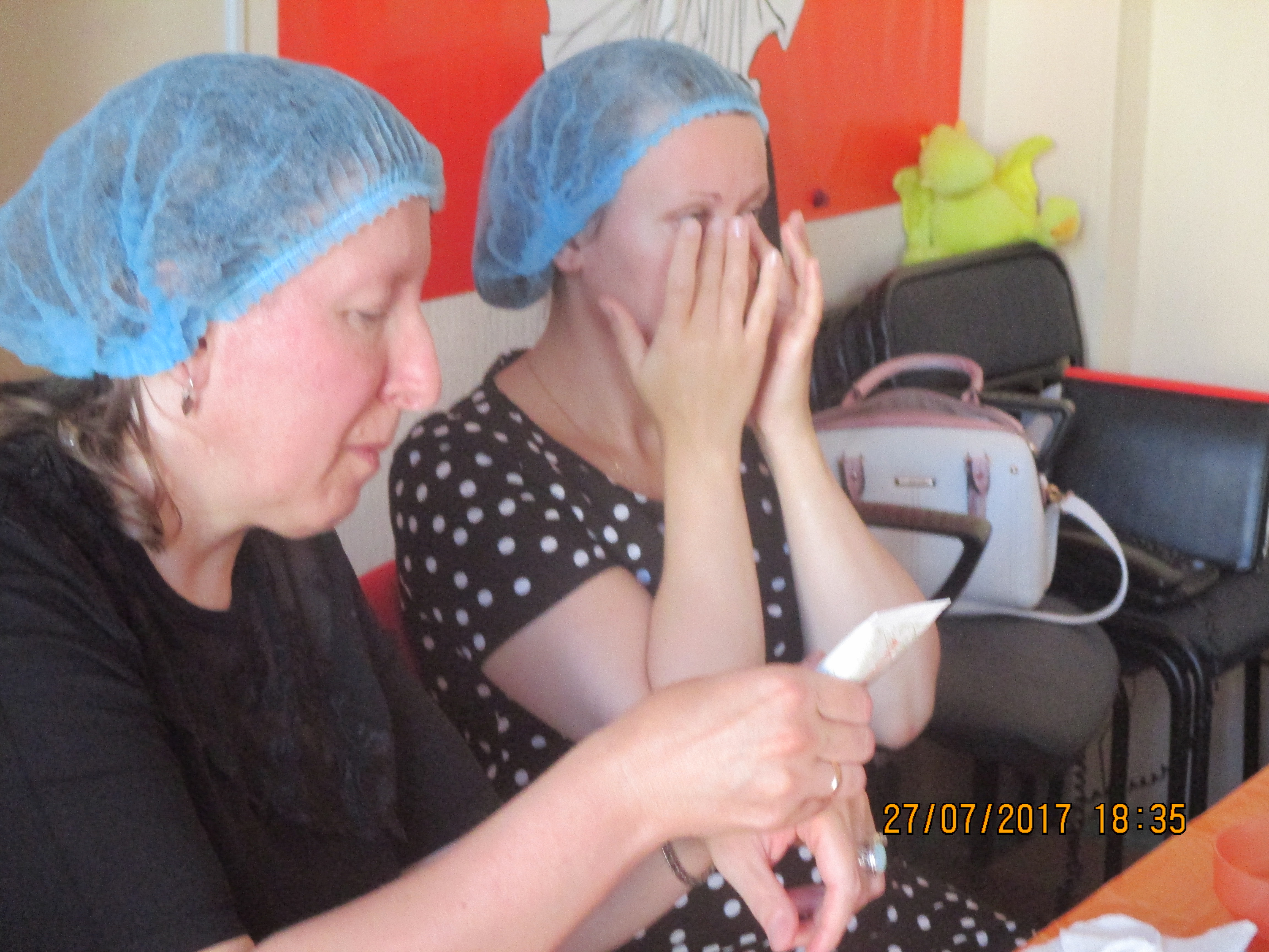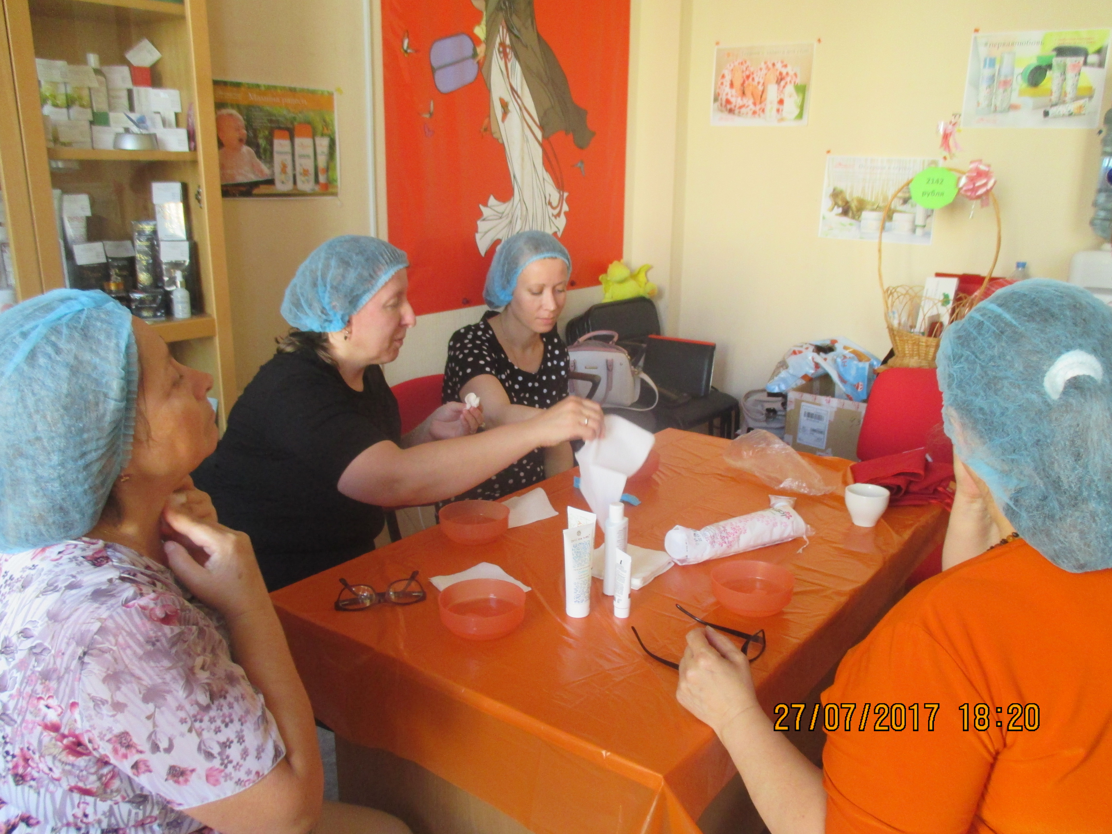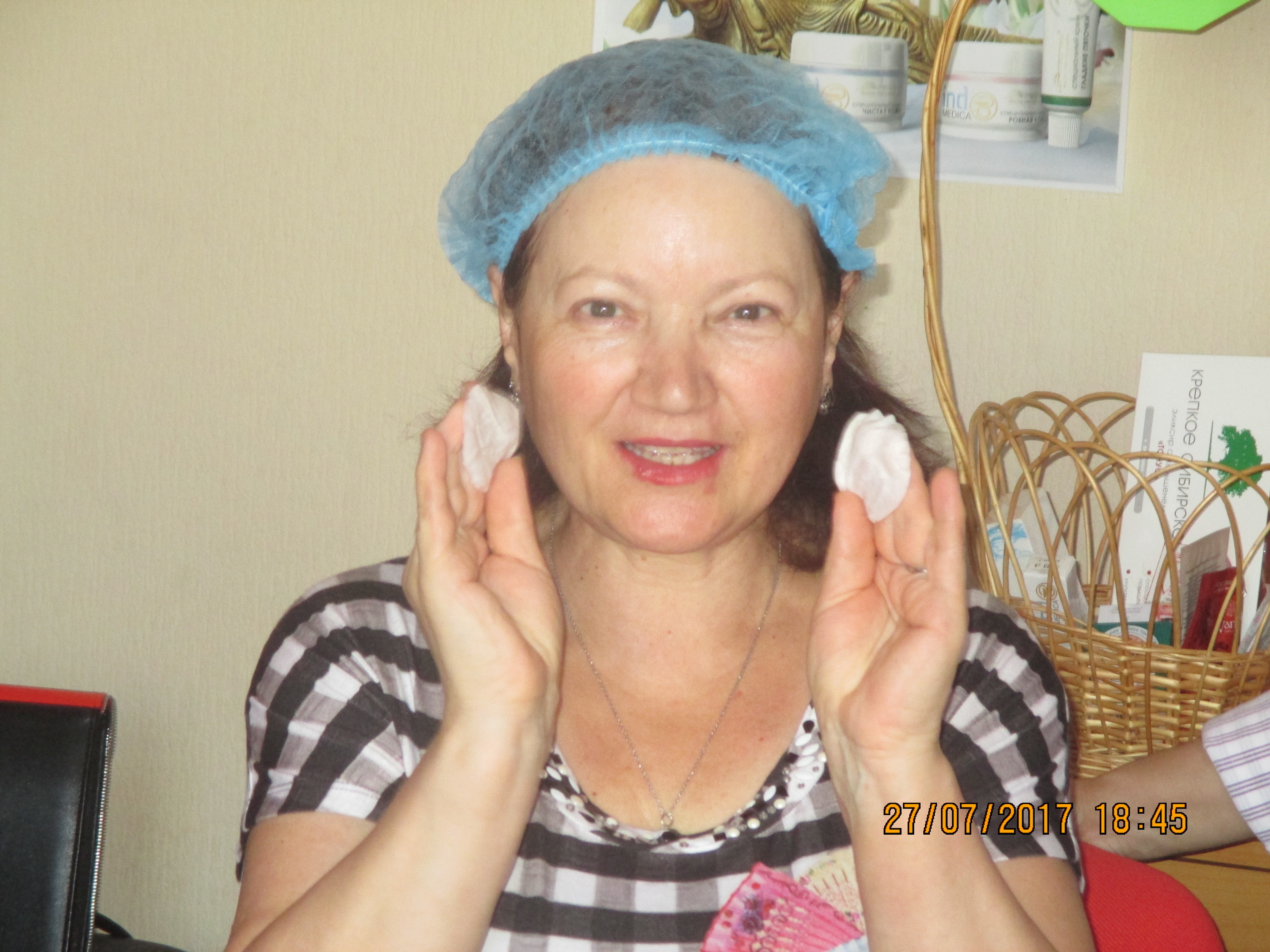 Косметическую сессию проводит профессиональный косметолог Рахматуллина А. С. Она беседует с каждой участницей, проводит диагностику кожи лица, обучает, как правильно ухаживать за лицом. порядок и действия.