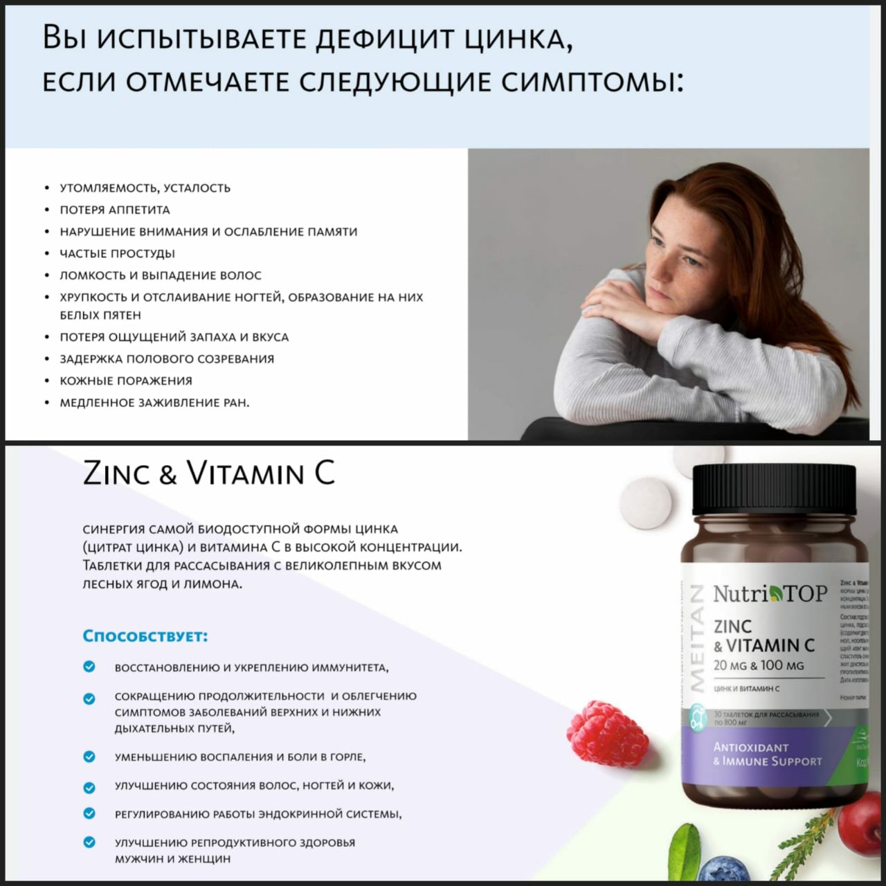 7. Цинк и витамином С важны для нервной системы. Ион цинка участвует в нейротрансмиссии. Дефицит цинка вызывает развитие депрессии. Одна таблетка в сутки улучшает состояние людей с инсультом и черепномозговой
