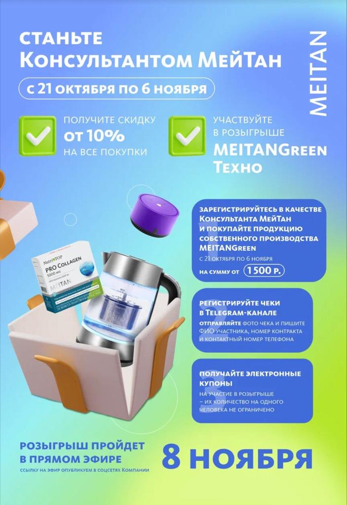 21 октября, в день МейТан Онлайн-Форума, стартовал розыгрыш "MEITANGreen Техно. УМНЫЕ ПОДАРКИ ЗА ПОЛЕЗНЫЕ ПОКУПКИ"!
