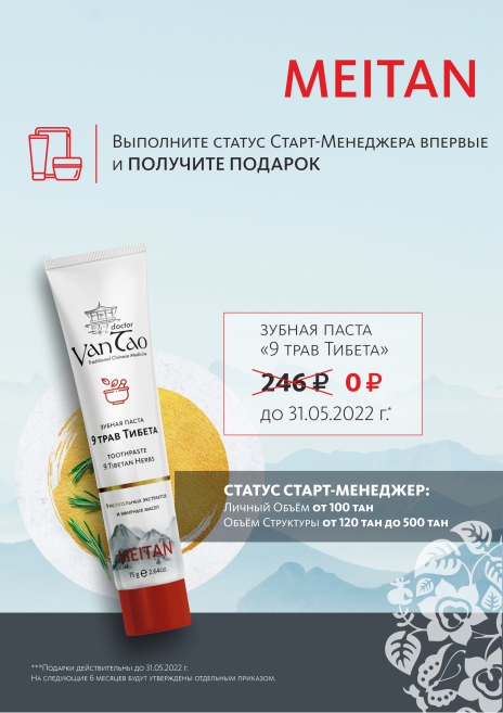 1. То вы получите не только скидку до 33% на полгода, но в подарок - хит МейТана. В настоящее время, это зубная паста "9 трав Тибета".