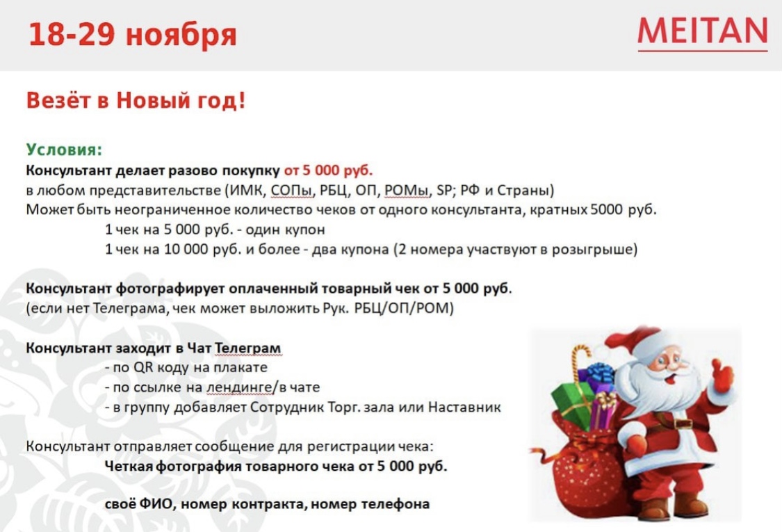 1. Совершайте единовременные покупки с 18 по 29 ноября на сумму от 5 000 рублей в МейТан.